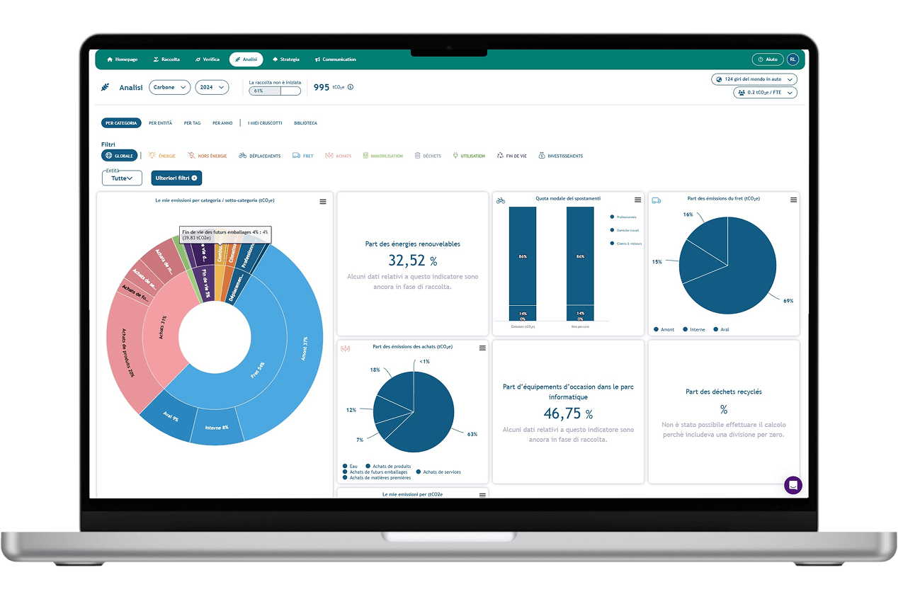 La soluzione all-in-one che centralizza la gestione CSR, il calcolo dell'impronta di Carbonio (Ambito 1, 2, 3) e la piena conformità alla Direttiva CSRD.